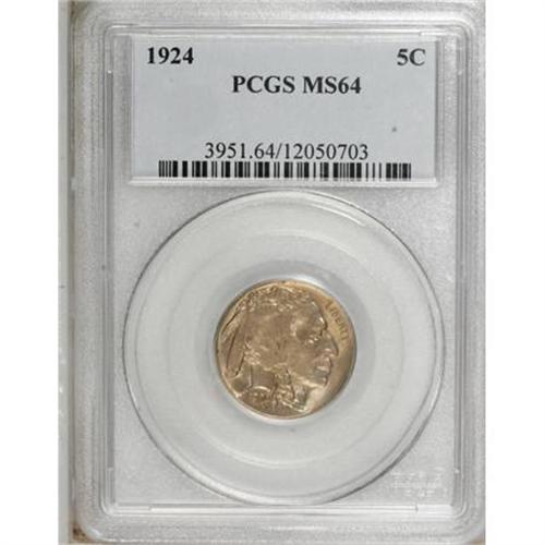 <B>1924 5C MS64 PCGS.</B></I> PCGS Population (325/259). NGC Census: (212/120). Mintage: 21,620,000. Numismedia Wsl. Price for NGC/PCGS coin in MS64: $292. (#3951)<BR><BR><B>Coin Engraver:</B> James E. Fraser<BR><BR><b>Shipping:</b> Coins & Currency (<a target="_blank" href="http://www.heritageauctions.com/common/shipping.php">view shipping information</a>)