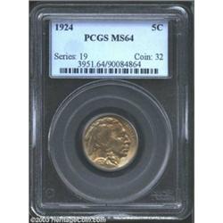 <TABLE cellSpacing=0 cellPadding=0 width="100%" bgColor=#000000 border=0><TBODY><TR><TD width="100%"><TABLE cellSpacing=1 cellPadding=3 width="100%" border=0><TBODY><TR><TD width="100%" bgColor=#79735c><FONT face=arial color=#ffffff size=3><B>Description</B> </FONT></TD></TR><TR><TD width="100%" bgColor=#ffffff><FONT face=arial size=2><B>1924 5C MS64 PCGS.</B></I> Green-gray, icy-blue, and champagne-rose patina. Well struck throughout the margins, while the centers have a good strike. The fields have heavy mint-made flow lines that contribute to the potent luster. </FONT></TD></TR></TBODY></TABLE></TD></TR></TBODY></TABLE><BR><A name=PricesRealized></A><TABLE cellSpacing=0 cellPadding=0 width="100%" bgColor=#000000 border=0><TBODY><TR><TD width="100%"><TABLE cellSpacing=1 cellPadding=3 width="100%" border=0><TBODY><TR><TD width="100%" bgColor=#79735c><A name=PR><FONT face=arial color=#ffffff size=3><B>Previous Prices from Heritage Auctions</B> </FONT></A></TD></TR><TR><TD bgColor=#f6f6ed><TABLE cellSpacing=0 cellPadding=0 width="100%" border=1><TBODY><TR><TD align=middle width="33%"><B>Date</B></TD><TD align=middle width="33%"><B>Service</B></TD><TD align=middle width="33%"><B>Price</B></TD></TR><TR bgColor=whitesmoke><TD width="33%"><B>07/29/2002</B></TD><TD width="33%">PCGS</TD><TD width="33%">$270.25</TD></TR><TR bgColor=whitesmoke><TD width="33%"><B>08/05/2001</B></TD><TD width="33%">PCGS</TD><TD width="33%">$264.50</TD></TR><TR bgColor=whitesmoke><TD width="33%"><B>05/15/2001</B></TD><TD width="33%">PCGS</TD><TD width="33%">$235.00</TD></TR><TR bgColor=whitesmoke><TD width="33%"><B>06/02/2001</B></TD><TD width="33%">PCGS</TD><TD width="33%">$258.75</TD></TR><TR bgColor=whitesmoke><TD width="33%"><B>06/02/2003</B></TD><TD width="33%">PCGS</TD><TD width="33%">$287.50</TD></TR><TR bgColor=whitesmoke><TD width="33%"><B>04/08/2003</B></TD><TD width="33%">PCGS</TD><TD width="33%">$310.50</TD></TR><TR bgColor=whitesmoke><TD width="33%"><B>10/06/2000</B></TD><TD width="33%">NGC</TD><TD width="33%">$195.50</TD></TR><TR bgColor=whitesmoke><TD width="33%"><B>02/24/2002</B></TD><TD width="33%">ANACS</TD><TD width="33%">$483.00</TD></TR><TR bgColor=whitesmoke><TD width="33%"><B>03/01/2003</B></TD><TD width="33%">PCGS</TD><TD width="33%">$310.50</TD></TR><TR bgColor=whitesmoke><TD width="33%"><B>11/25/2002</B></TD><TD width="33%">PCGS</TD><TD width="33%">$333.50</TD></TR><TR bgColor=whitesmoke><TD width="33%"><B>05/31/2003</B></TD><TD width="33%">ANACS</TD><TD width="33%">$345.00</TD></TR></TBODY></TABLE></TD></TR><TR><TD bgColor=#ffffff><FONT face=arial size=1 ?>PLEASE NOTE: All prices realized reflect the final hammer price PLUS the buyer's premium in auctions that charge a buyer's premium. Each item has a notation at the top of the listing indicating whether that lot included a buyer's premium. Example: A item that sells with a final hammer price of $100 and a 20% buyer's premium will display with a price realized of $120. All information listed is intended to be as accurate as possible, but errors are possible. Please use this guide carefully and inform us of any inaccuracies. </FONT></TD></TR></TBODY></TABLE></TD></TR></TBODY></TABLE><BR><TABLE cellSpacing=0 cellPadding=0 width="100%" bgColor=#000000 border=0><TBODY><TR><TD width="100%"><TABLE cellSpacing=1 cellPadding=3 width="100%" border=0><TBODY><TR><TD width="100%" bgColor=#79735c colSpan=6><FONT face=arial color=#ffffff size=3><B>Price Guide*</B> </FONT></TD></TR><TR bgColor=#f6f6ed><TD align=middle><B>Grade</B> </TD><TD align=middle><B>Coin World<BR>(Trends)</B> </TD><TD align=middle><B>Numismedia<BR>Retail</B> </TD><TD align=middle><B>Numismedia<BR>Wholesale</B> </TD><TD align=middle><B>Coin<BR>Universe</B> </TD><TD align=middle><B>Heritage<BR>Value Index</B> </TD></TR><TR bgColor=#ffffff><TD align=middle>63</TD><TD align=right>$125.00</TD><TD align=right>$125.00</TD><TD align=right>$104.00</TD><TD align=right>$130.00</TD><TD align=right>$94.63</TD></TR><TR style="FONT-WEIGHT: bold" bgColor=#cccfdd><TD align=middle>64</TD><TD align=right>$345.00</TD><TD align=right>$330.00</TD><TD align=right>$264.00</TD><TD align=right>$375.00</TD><TD align=right>$275.80</TD></TR><TR bgColor=#ffffff><TD align=middle>65</TD><TD align=right>$875.00</TD><TD align=right>$690.00</TD><TD align=right>$550.00</TD><TD align=right>$965.00</TD><TD align=right>$614.25</TD></TR><TR bgColor=#ffffff><TD colSpan=6><FONT size=1>*All information listed is intended to be as accurate as possible, but errors are possible. No item may be returned or refused based on this information which is provided as a service to our customers. You should contact each pricing source directly to determine the accuracy of this information. </FONT></TD></TR></TBODY></TABLE></TD></TR></TBODY></TABLE><BR><TABLE cellSpacing=0 cellPadding=0 width="100%" bgColor=#000000 border=0><TBODY><TR><TD width="100%"><TABLE cellSpacing=1 cellPadding=3 width="100%" border=0><TBODY><TR><TD width="100%" bgColor=#79735c><FONT face=arial color=#ffffff size=3><B>Population Guide</B> </FONT></TD></TR><TR bgColor=#ffffff><TD align=middle><!-- Begin Output of Population Grid--><TABLE cellSpacing=0 cellPadding=0 width="100%" border=0><TBODY><TR><TD vAlign=center><TABLE cellSpacing=0 width="100%" border=1 cellsadding="3"><TBODY><TR><TD vAlign=center><TABLE cellSpacing=0 cellPadding=3 width="100%" border=1><TBODY><TR><TD vAlign=center align=middle bgColor=#f0f1e8 colSpan=2 <CENTER><FONT face=Arial size=2><B>PCGS Pop </B></FONT><CENTER></CENTER></TD><TD vAlign=center align=middle bgColor=#f0f1e8 colSpan=2><CENTER><FONT face=Arial size=2><B>NGC Pop</B></CENTER></FONT></TD></TR><TR><TD vAlign=center><FONT face=Arial size=2>(64)</FONT> </TD><TD vAlign=center align=right><FONT face=Arial size=2>261</FONT> </TD><TD vAlign=center><FONT face=Arial size=2>(64)</FONT> </TD><TD vAlign=center align=right><FONT face=Arial size=2>151</FONT> </TD></TR><TR><TD vAlign=center><FONT face=Arial size=2>(>64)</FONT> </TD><TD vAlign=cent