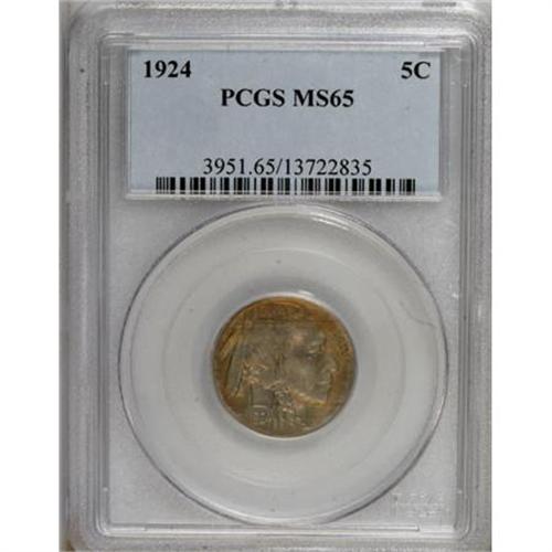 <B>1924 5C MS65 PCGS.</B></I> PCGS Population (186/67). NGC Census: (86/34). Mintage: 21,620,000. Numismedia Wsl. Price for NGC/PCGS coin in MS65: $645. (#3951)<BR><BR><B>Coin Engraver:</B> James E. Fraser<BR><BR><b>Shipping:</b> Coins & Currency (<a target="_blank" href="http://www.heritageauctions.com/common/shipping.php">view shipping information</a>)
