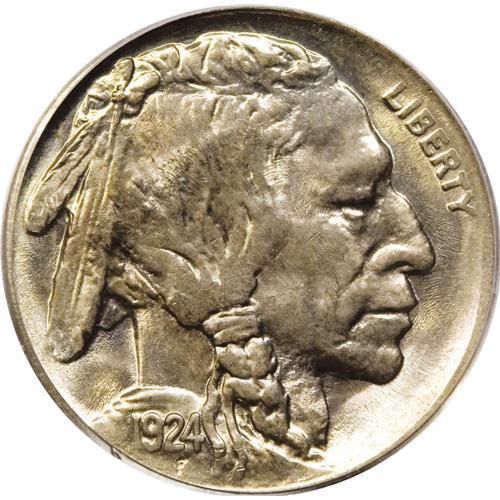 <B>1924 5C MS66 PCGS.</B></I> Beautiful heather and lilac patina accompanies the considerable orange-peel effect noted on each side, the product of die erosion. Although more than 21.6 million pieces were produced, this coin is one of 59 pieces so graded, with only four examples finer (4/07).<BR><BR><b>Shipping:</b> Coins & Currency (<a target="_blank" href="http://www.heritageauctions.com/common/shipping.php">view shipping information</a>)