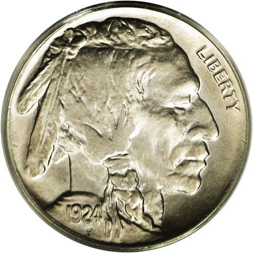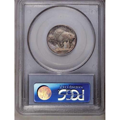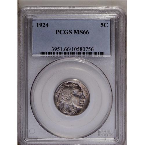 <B>1924<5C> MS66 PCGS.</B></I> Lovely light pastel rose and ice-blue toning alternates on both sides of this appealing and well struck Premium Gem. This well struck piece shows good detail overall, with weakness largely confined to the very top of the buffalo's head and the shoulder. Some of these mid-series P-mint Buffalos in high grade are underrated and much more elusive than generally realized: As a comparison, there were nearly 22 million of this issue minted, versus about half that many of the 1921 Philadelphia coins, yet in MS66 PCGS has graded 125 pieces with 16 higher of the 1921, compared with 55 of the 1924 in MS66, and only four finer (6/06).