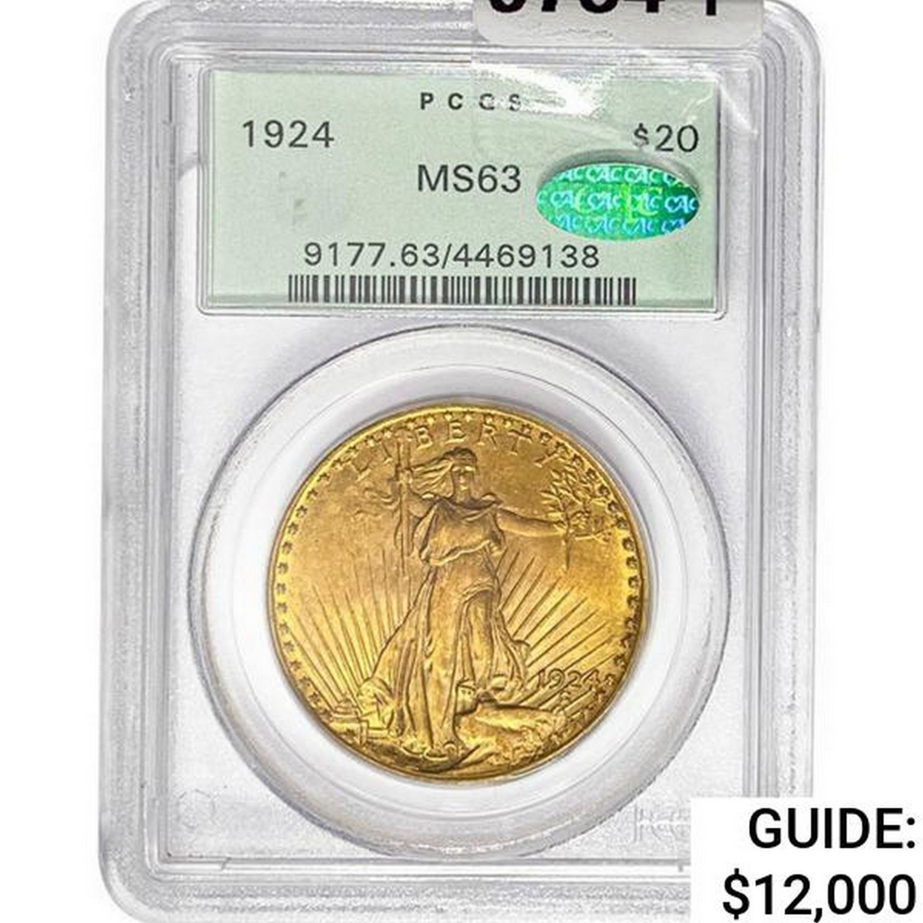 1924 CAC $20 Gold Double Eagle PCGS MS63