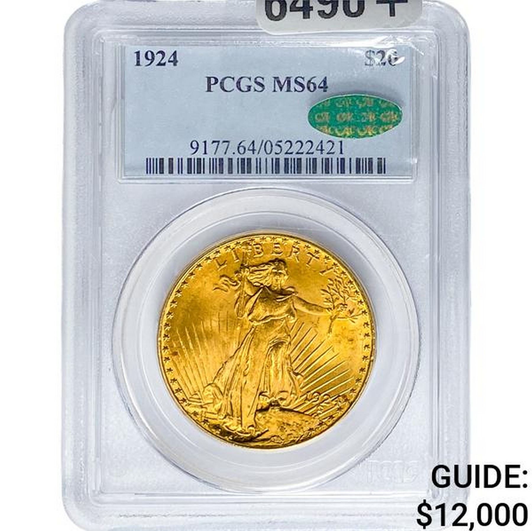 1924 CAC $20 Gold Double Eagle PCGS MS64