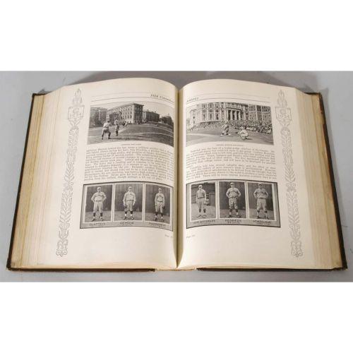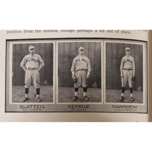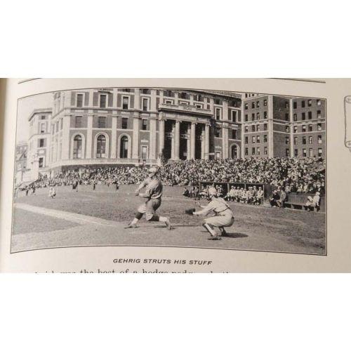 1924 COLUMBIA UNIVERSITY YEARBOOK FEATURING LOU GEHRIG Gehrig is featured in the section about the baseball team with a team picture, action picture and standing in uniform. The text also refers to his becoming the property of the New York Yankees, CONDITION REPORT: crude repair to spine involving 1/2 spine replaced, interior clean and excellent, PACKING AND SHIPPING: Fairfield Auction will provide packing and shipping (excluding insurance) within the Continental U.S. for $30. Buyer is welcome to use any other service or pick-up at the gallery.