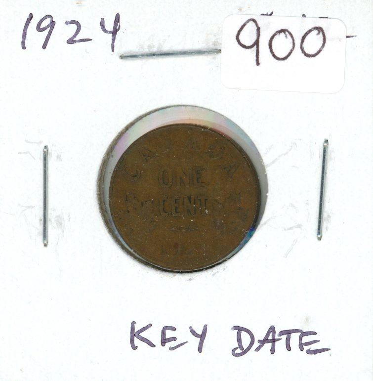 1924 Canadian George V Small Cent. Key Date. F-12.