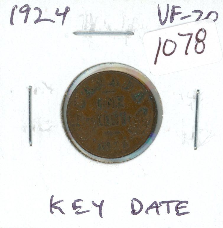 1924 Canadian Small Cent. Key Date. VF-20.