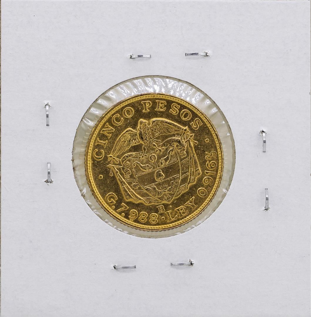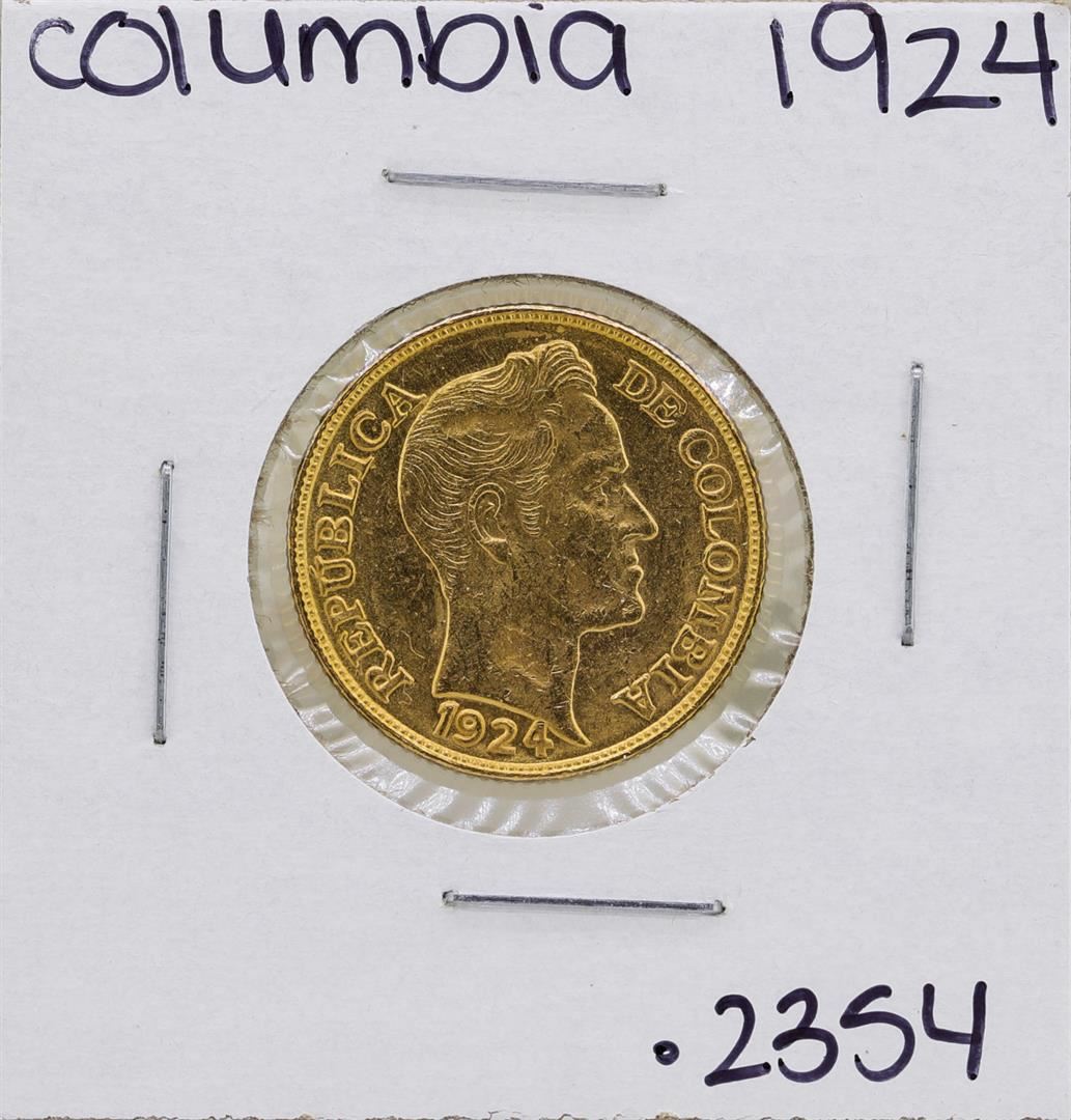 One 1924 Columbia Simon Bolivar 5 Pesos Gold Coin.