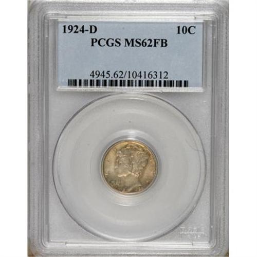 <B>1924-D 10C MS62 Full Bands PCGS.</B></I> Light golden-brown and gunmetal-gray toning drapes this satiny and unmarked better date dime. The centers are exquisitely struck, although a few letters near the left border lack absolute definition.<BR><BR><b>Shipping:</b> Coins & Currency (<a target="_blank" href="http://www.heritageauctions.com/common/shipping.php">view shipping information</a>)