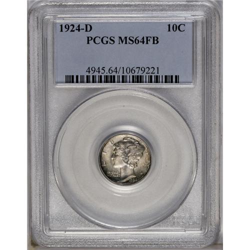 <B>1924-D<10C> MS64 Full Bands PCGS.</B></I> Mottled violet and gold toning on the lustrous surfaces deepens on the reverse. The sharp strike, made evident by the Full Bands designation, adds to the overall eye appeal. Only a few tiny abrasions are visible to the unaided eye.<BR><I>From The Redfjord Collection.</B></I>
