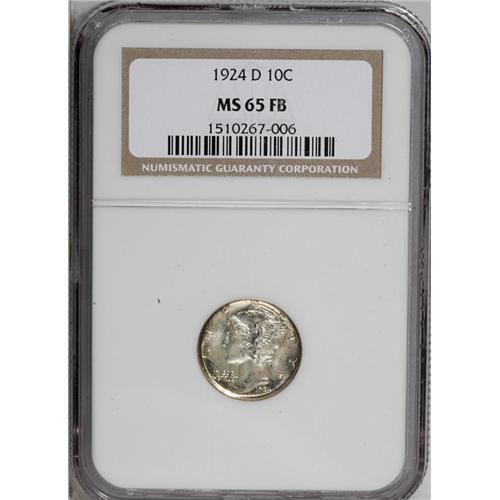 <B>1924-D<10C> MS65 Full Bands NGC.</B></I> Quite frosty and sharply defined throughout with no mentionable blemishes.