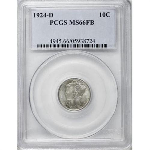 <B>1924-D 10C MS66 Full Bands PCGS.</B></I> Splashes of rose and speckles of light tan reside on the lustrous surfaces of this Premium Gem, and a well executed strike brings out sharp definition on all of the design elements. For complete accuracy, we mention a few ticks on the fasces. Population: 34 in 66, 9 finer (12/07).<BR><BR><B>Coin Engraver:</B> Adolph A. Weinman<BR><BR><b>Shipping:</b> Coins & Currency (<a target="_blank" href="http://www.heritageauctions.com/common/shipping.php">view shipping information</a>)