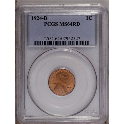 <B>1924-D<1C> MS64 Red PCGS.</B></I> Well struck for the issue with lustrous brick-red and golden-orange color. Only a few inconsequential carbon spots away from the Gem category.