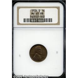 <B>1924-D 1C MS65 Red and Brown NGC.</B></I> Multicolored toning occupies the obverse, while the reverse is mostly faded red, gold, and light blue. The surfaces are seemingly free of any mentionable marks. Population: 62 in 65, 2 finer (2/05).