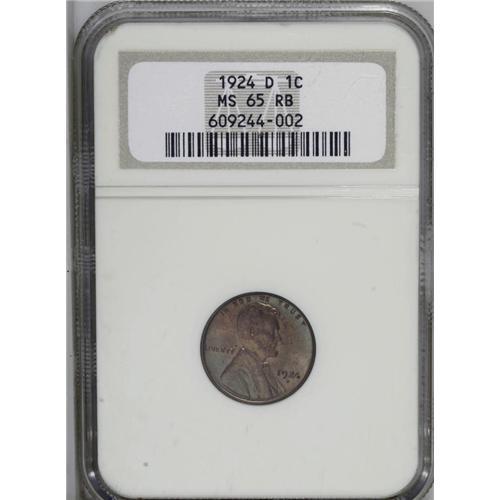 <B>1924-D<1C> MS65 Red and Brown NGC.</B></I> Sharply struck with glossy brown and blue patina. A pleasing example of this scarce and always popular semi-key issue. A few minor flecks occur on each side. Census: 63 in 65, 2 finer (8/06).