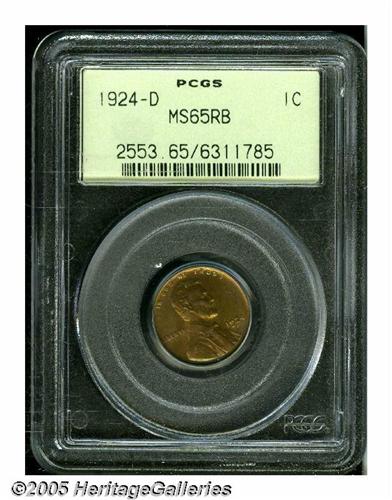 1924-D 1C MS65 Red and Brown PCGS. Vivid olive, r