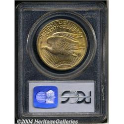 <B>1924-D<$20> MS63 PCGS.</B></I> A modestly abraded representative of this condition scarcity, with soft, frosted luster and pleasing coloration. Only a minority of '24-D Saints survive at the Select or better grade level. <BR><BR><B>Important notice:</B> Heritage usually auctions material at the rate of 200-250 lots per hour. On some occasions eBay Live bid software or the Internet may not be able to keep up with the pace of the auction. We recommend placing a realistic absentee bid now as insurance to avoid disappointment. Occasionally the auctioneer may eliminate or reject an eBay Live bid, and the auctioneer may also reopen a lot after the close of the eBay live bidding (usually because we missed an audience bid), and may reject your bid even if it shows you as the winning bidder. By bidding via eBay Live, you agree that Heritage may award the lot to another bidder at its sole discretion under the circumstances described above or any other reasonable circumstances. Since eBay bids are not shown to us until we open the lot on the floor, we treat those bids just like floor bids. In most cases the floor responds before the eBay bid is presented to us, due to Internet lag time, so for consistency we have made it a policy that floor bids are always considered first over tie eBay live bids. Also please note that all Heritage lots purchased through eBay Live carry a 20% Buyer's Premium. Please make sure you read the Terms and Conditions before you bid.