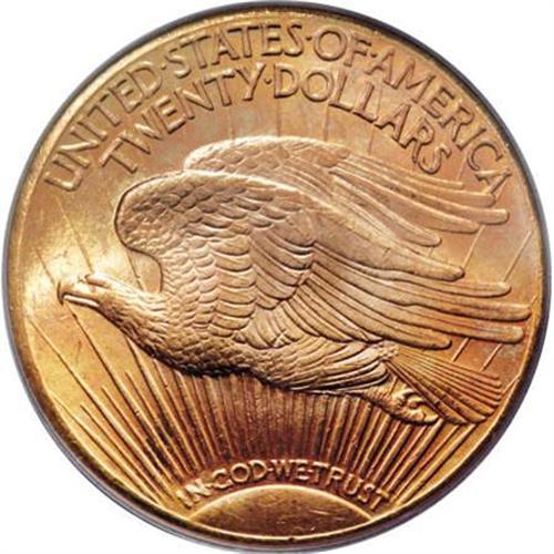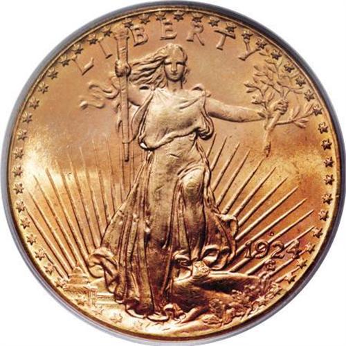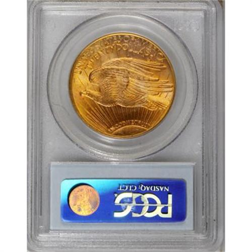 <B>1924-D $20 MS64 PCGS.</B></I> The rich yellow-orange surfaces of this enticing Choice example offer spectacular luster, which is just one element of this piece's incredible visual appeal. The strike is solid, and the coin's overall surface quality is tantalizingly close to the Gem level, with a single flaw at Liberty's waist the only bar to a finer grade.<BR> Despite a sizable mintage in excess of 3 million pieces, the 1924-D was not preserved in quantity, as its P-mint counterpart was; rather, the 1924-D double eagles largely stayed within the United States, and the vast majority were melted after Franklin D. Roosevelt's gold recall. This issue is conditionally rare any finer, with just nine such pieces certified by PCGS (8/07).<BR><BR><B>Coin Engraver:</B> Augustus Saint-Gaudens<BR><BR><b>Shipping:</b> Coins & Currency (<a target="_blank" href="http://www.heritageauctions.com/common/shipping.php">view shipping information</a>)