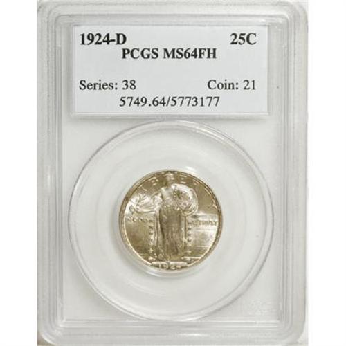<B>1924-D 25C MS64 Full Head PCGS.</B></I> The typical Mint State survivor of this issue comes with a mushy strike, both on Liberty's head and across the top of the date. While a bit of striking deficiency is still evident on the date of this frosty near-Gem, Liberty's head is uncannily bold. Population: 65 in 64, 57 finer (6/07).<BR><BR><B>Coin Engraver:</B> Hermon A. MacNeil<BR><BR><b>Shipping:</b> Coins & Currency (<a target="_blank" href="http://www.heritageauctions.com/common/shipping.php">view shipping information</a>\)