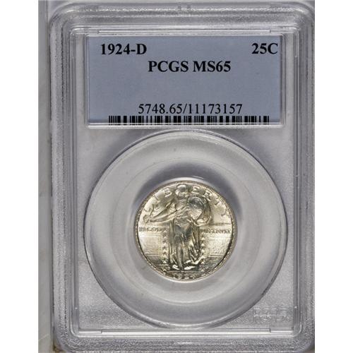 1924-D 25C MS65 PCGS. Brilliant throughout, the surfac 1924-D
