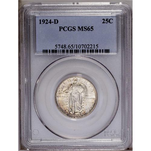 1924-D 25C MS65 PCGS. Lustrous and attractive, with da 1924-D[25C] MS65 PCGS.
