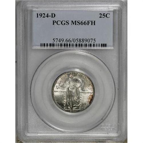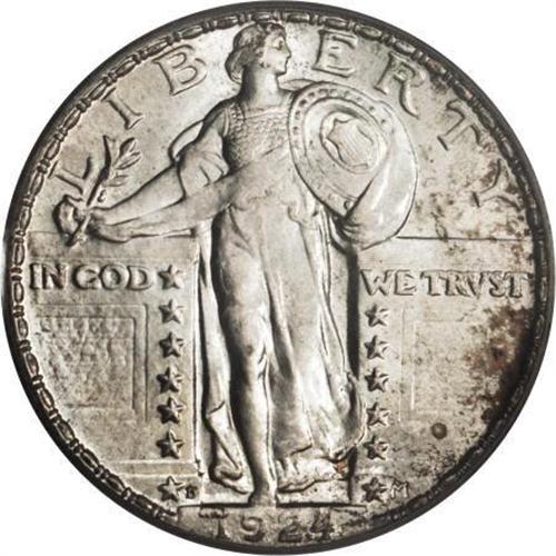 <B>1924-D 25C MS66 Full Head PCGS.</B></I> An attentive strike transcends the Full Head, resulting in strong delineation on most of the remaining design elements, including the chain mail, the vertical stripes of the inner shield, and the rivets, save for a couple near the body. An occasional splash of orange-green color visits highly lustrous surfaces that are free of significant marks. Population: 18 in 66 Full Head, 1 finer (1/08).<BR><BR><B>Coin Engraver:</B> Hermon A. MacNeil<BR><BR><b>Shipping:</b> Coins & Currency (<a target="_blank" href="http://www.heritageauctions.com/common/shipping.php">view shipping information</a>)