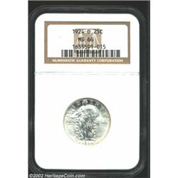 1924-D 25C MS66 NGC. Brilliant and highly lustrous with the top half of the head sharply defined. St