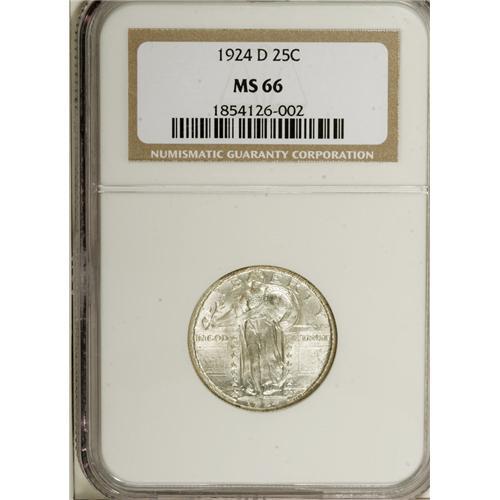 1924-D 25C MS66 NGC. Scintillating luster sweeps this