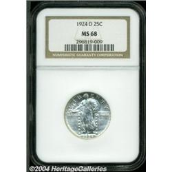 <table><tbody><tr><td><table> <TR><TD width="100%"><TABLE cellSpacing=1 cellPadding=3 width="100%" border=0><TBODY><TR><TD width="100%" bgColor=#79735c><FONT face=arial color=#ffffff size=3><B>Description</B> </FONT></TD></TR><TR><TD width="100%" bgColor=#ffffff><FONT face=arial size=2><B>1924-D 25C MS68 NGC.</B></I> The surfaces of this coin are as close to technical perfection as any Standing Liberty quarter we have seen. Magnification fails to reveal any meaningful abrasions, but more importantly, the mint luster is bright and intensely frosted. Struck from the early state of the obverse die, the date shows the die crack that is normally seen but the digits are all still fully intact. An exquisite 1924-D and unimprovable in terms of technical preservation. This is the only coin so graded by either of the major grading services, and of course, none are finer (11/03). </FONT></TD></TR></TBODY></TABLE></TD></TR></TBODY></TABLE><BR><A name=PricesRealized></A><TABLE cellSpacing=0 cellPadding=0 width="100%" bgColor=#000000 border=0><TBODY><TR><TD width="100%"><TABLE cellSpacing=1 cellPadding=3 width="100%" border=0><TBODY><TR><TD width="100%" bgColor=#79735c><A name=PR><FONT face=arial color=#ffffff size=3><B>Previous Prices from Heritage Auctions</B> </FONT></A></TD></TR><TR><TD bgColor=#f6f6ed>No Prior Data Recorded </TD></TR><TR><TD bgColor=#ffffff><FONT face=arial size=1 ?>PLEASE NOTE: All prices realized reflect the final hammer price PLUS the buyer's premium in auctions that charge a buyer's premium. Each item has a notation at the top of the listing indicating whether that lot included a buyer's premium. Example: A item that sells with a final hammer price of $100 and a 20% buyer's premium will display with a price realized of $120. All information listed is intended to be as accurate as possible, but errors are possible. Please use this guide carefully and inform us of any inaccuracies. </FONT></TD></TR></TBODY></TABLE></TD></TR></TBODY></TABLE><BR><TABLE cellSpacing=0 cellPadding=0 width="100%" bgColor=#000000 border=0><TBODY><TR><TD width="100%"><TABLE cellSpacing=1 cellPadding=3 width="100%" border=0><TBODY><TR><TD width="100%" bgColor=#79735c colSpan=6><FONT face=arial color=#ffffff size=3><B>Price Guide*</B> </FONT></TD></TR><TR bgColor=#f6f6ed><TD align=middle><B>Grade</B> </TD><TD align=middle><B>Coin World<BR>(Trends)</B> </TD><TD align=middle><B>Numismedia<BR>Retail</B> </TD><TD align=middle><B>Numismedia<BR>Wholesale</B> </TD><TD align=middle><B>Coin<BR>Universe</B> </TD><TD align=middle><B>Heritage<BR>Value Index</B> </TD></TR><TR bgColor=#ffffff><TD align=middle>67</TD><TD align=right>---</TD><TD align=right>---</TD><TD align=right>$1,150.00</TD><TD align=right>---</TD><TD align=right>---</TD></TR><TR style="FONT-WEIGHT: bold" bgColor=#cccfdd><TD align=middle>68</TD><TD align=right>---</TD><TD align=right>---</TD><TD align=right>---</TD><TD align=right>---</TD><TD align=right>---</TD></TR><TR bgColor=#ffffff><TD align=middle>69</TD><TD align=right>---</TD><TD align=right>---</TD><TD align=right>---</TD><TD align=right>---</TD><TD align=right>---</TD></TR><TR bgColor=#ffffff><TD colSpan=6><FONT size=1>*All information listed is intended to be as accurate as possible, but errors are possible. No item may be returned or refused based on this information which is provided as a service to our customers. You should contact each pricing source directly to determine the accuracy of this information. </FONT></TD></TR></TBODY></TABLE></TD></TR></TBODY></TABLE><BR><TABLE cellSpacing=0 cellPadding=0 width="100%" bgColor=#000000 border=0><TBODY><TR><TD width="100%"><TABLE cellSpacing=1 cellPadding=3 width="100%" border=0><TBODY><TR><TD width="100%" bgColor=#79735c><FONT face=arial color=#ffffff size=3><B>Population Guide</B> </FONT></TD></TR><TR bgColor=#ffffff><TD align=middle><!-- Begin Output of Population Grid--><TABLE cellSpacing=0 cellPadding=0 width="100%" border=0><TBODY><TR><TD vAlign=center><TABLE cellSpacing=0 width="100%" border=1 cellsadding="3"><TBODY><TR><TD vAlign=center><TABLE cellSpacing=0 cellPadding=3 width="100%" border=1><TBODY><TR><TD vAlign=center align=middle bgColor=#f0f1e8 colSpan=2 <CENTER><FONT face=Arial size=2><B>PCGS Pop </B></FONT><CENTER></CENTER></TD><TD vAlign=center align=middle bgColor=#f0f1e8 colSpan=2><CENTER><FONT face=Arial size=2><B>NGC Pop</B></CENTER></FONT></TD></TR><TR><TD vAlign=center><FONT face=Arial size=2>(68)</FONT> </TD><TD vAlign=center align=right><FONT face=Arial size=2>0</FONT> </TD><TD vAlign=center><FONT face=Arial size=2>(68)</FONT> </TD><TD vAlign=center align=right><FONT face=Arial size=2>1</FONT> </TD></TR><TR><TD vAlign=center><FONT face=Arial size=2>(>68)</FONT> </TD><TD vAlign=center align=right><FONT face=Arial size=2>0</FONT> </TD><TD vAlign=center><FONT face=Arial size=2>(>68)</FONT> </TD><TD vAlign=center align=right><FONT face=Arial size=2>0</FONT> </TD></TR></TBODY></TABLE></TD></TR></TBODY></TABLE></TD></TR></TBODY></TABLE><!-- End Output of Population Grid--></TD></TR></TBODY></TABLE></TD></TR></TBODY></TABLE><BR><TABLE cellSpacing=0 cellPadding=0 width="100%" bgColor=#000000 border=0><TBODY><TR> <font color='#000000'><span style='background-color: #FFFFFF'><td bgcolor='#FFFFFE'> Important notice: Heritage usually auctions material at the rate of 200-250 lots per hour. On some occasions eBay Live bid software or the Internet may not be able to keep up with the pace of the auction. We recommend placing a realistic absentee bid now as insurance to avoid disappointment. Occasionally the auctioneer may eliminate or reject an eBay Live bid, and the auctioneer may also reopen a lot after the close of the eBay live bidding (usually because we missed an audience bid), and may reject your bid even if it shows you as the winning bidder. By bidding via eBay Live, you agree that Heritage may award the lot to another bidder at its sole discretion under the circumstances described above or any other reasonable circumstances