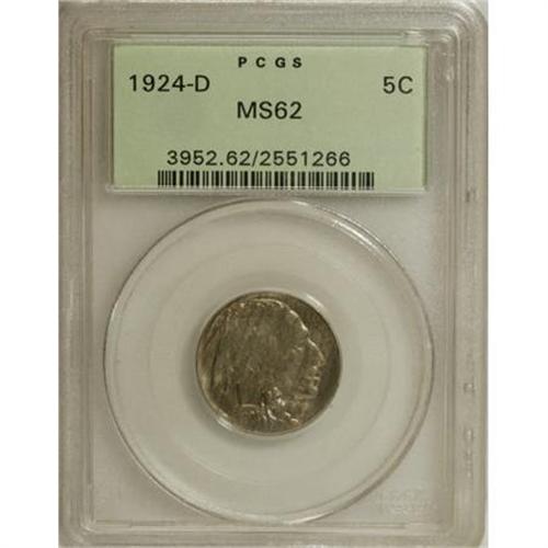 <B>1924-D 5C MS62 PCGS.</B></I> PCGS Population (42/476). NGC Census: (33/290). Mintage: 5,258,000. Numismedia Wsl. Price for NGC/PCGS coin in MS62: $450. (#3952)<BR><BR><B>Coin Engraver:</B> James E. Fraser<BR><BR><b>Shipping:</b> Coins & Currency (<a target="_blank" href="http://www.heritageauctions.com/common/shipping.php">view shipping information</a>)