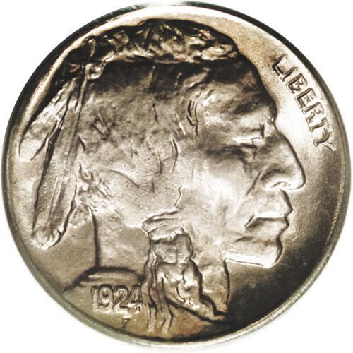 <B>1924-D<5C> MS65 PCGS.</B></I> A solid Gem example of this very scarce Buffalo nickel. The 1924-D is a highly respected condition and strike rarity in the Buffalo nickel series, and one that can be quite a challenge to locate as an originally toned, problem-free Gem, such as this piece. The striking details on this piece are strong throughout except, of course, on the bison's head, which is almost a diagnostic for this issue. Light reddish-golden patina covers both sides with strong underlying satiny luster readily apparent. Population: 77 in 65, 1 finer (4/06).