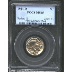 1924-D 5C MS65 PCGS. Almost completely brilliant with the intensity of luster one looks for on a '38