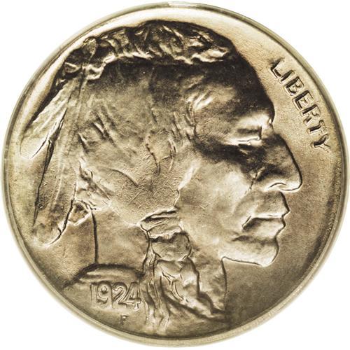 <B>1924-D<5C> MS65 PCGS.</B></I> In Gem condition this date is very elusive. The head hair detail and shoulder of the bison and the details above the Indian's braid are not quite fully brought up, as usual, but most other design elements are at least boldly struck. Full, satiny luster with light accents of gold and rose-gray patina over each side. A rare and valuable item for the advanced collector. Just one example has been graded higher by PCGS. Population: 78 in 65, 1 finer (9/06).