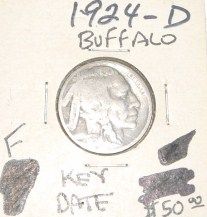 1924-D BUFFALO NICKEL RED BOOK VALUE IS $50.00 *RARE KEY DATE FINE GRADE*!! ***Coin, Currency & All Items Listed in this auction - Grades, Conditions and Values are not Safe Deposit Coins LLC Responsibilty. Grades, Condition and Values are determined by Consigner(s) & Buyers ONLY