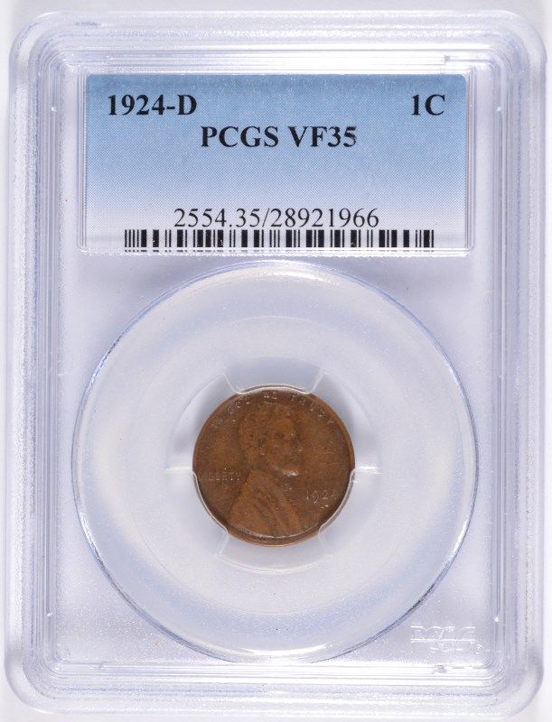 1924-D LINCOLN CENT, PCGS VF-35, ANYONE ELSE WOULD GRADE XF-40