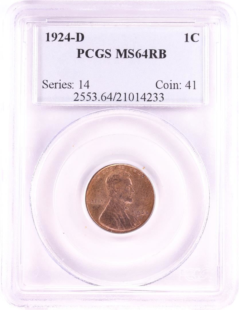 One 1924-D Lincoln Wheat Cent Coin PCGS MS64RB. PCGS Graded.
