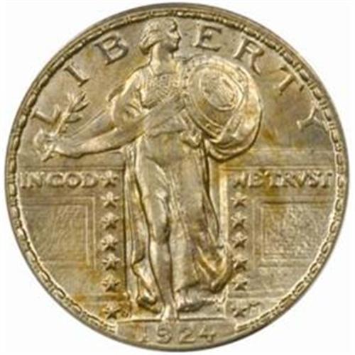 <style type="text/css"> body, td, th { font-family: Arial, Helvetica, sans-serif; font-size: 12px; color: #482424; margin: 0px; padding: 0px; } #header { background-image: url(http://www.bowersandmerena.com/ebay/images/template_v3_01.gif); clear: both; background-color: #590303; border-top-width: 2px; border-top-style: solid; border-top-color: #B38C4F;}#header #header_wrapper { height: 75px; clear: both; width: 800px; margin-right: auto; margin-left: auto; background-image: url(http://www.bowersandmerena.com/ebay/images/template_v3_03.gif); background-repeat: no-repeat; background-position: right; color: #F3EDCC;}#header #header_wrapper #header_logo { float: left; height: 75px; width: 444px; background-image: url(http://www.bowersandmerena.com/ebay/images/template_v3_02.gif); background-repeat: no-repeat; font-size: 10px; text-transform: capitalize; color: #B38C4F;}#header #header_wrapper #header_right { float: left; height: 75px; width: 356px; text-align: right;}#header #header_wrapper #header_right #headerLoginBtn { margin-bottom: 30px;}#header #header_wrapper #header_right input#txtSearch { color: #B49056; border: 1px solid #B49056; width: 175px; padding-top: 3px; padding-right: 3px; padding-bottom: 4px; padding-left: 3px;}#nav { height: 37px; background-image: url(http://www.bowersandmerena.com/ebay/images/template_v3_05.gif); clear: both;}#nav #nav_wrapper { height: 35px; width: 800px; margin-right: auto; margin-left: auto; border-left-width: 1px; border-left-style: solid; border-left-color: #B38C4F;}#nav #nav_wrapper a { padding-right: 15px; padding-left: 15px; border-right-width: 1px; border-right-style: solid; border-right-color: #B38C4F; height: 25px; padding-top: 10px; display: block; float: left; text-decoration: none; font-weight: bold; color: #5D0303;}#nav #nav_wrapper a:hover { color: #B38C4F;}#nav #nav_wrapper #search { float: right; padding-top: 7px;}#nav #nav_wrapper #search #txtSearch { font-family: Arial, Helvetica, sans-serif; font-size: 10px; text-transform: uppercase; color: #D2AE75; border: 1px solid #B38C4F; padding: 3px;}#content_bgd { background-image: url(http://www.bowersandmerena.com/ebay/images/template_v3_09.gif); background-repeat: repeat-y; background-position: center; padding-top: 15px; padding-bottom: 15px; background-color: #FBFBDB;}#content_wrapper { clear: both; height: auto; width: 800px; margin-right: auto; margin-left: auto;}.LotDetailWhite{ line-height:normal; font-size:13px; font-family: arial,helvetica,sans-serif; color: White; font-weight: bold;}.LotDetailInformation{ line-height:normal; font-size: 13px; font-family: arial,helvetica,sans-serif;}.LotDetailMessage{ line-height:normal; font-size: 13px; font-family: arial,helvetica,sans-serif; color: red;}}tr.HeaderAuctionTitle td { color: #000000; font-weight: bold; padding: 2px; background-image: url(http://www.bowersandmerena.com/ebay/images/template_v3_05.gif); background-repeat: repeat-x; border-bottom-width: 1px; border-bottom-style: solid; border-bottom-color: #B38C4F;}table.AuctionSummary a, table.AuctionSummary a:link, table.AuctionSummary a:visited { color: #0000FF; text-decoration: none;}}td.tableHeaderLeft { border-left-width: 1px; border-left-style: solid; border-left-color: #B38C4F;}td.tableHeaderRight { border-right-width: 1px; border-right-style: solid; border-right-color: #B38C4F;}td.tableCellMiddle { border-left-width: 1px; border-left-style: solid; border-left-color: #B38C4F; border-right-width: 1px; border-right-style: solid; border-right-color: #B38C4F; padding: 5px;}tr.footer td { border-top-width: 1px; border-top-style: solid; border-top-color: #B38C4F;}</style></head><body><div id="header"> <div id="header_wrapper"> <div id="header_logo"> </div> <div id="header_right"> </div> </div></div><div id="nav"> <div id="nav_wrapper"> <a href="http://www.bowersandmerena.com">Our eBayLive Auctions</a> <a href="#PaymentInfo">Payment Information</a> <a href="#ShippingInfo">Shipping Information</a> <a href="#About">About Bowers and Merena</a> </div></div><div id="content_bgd"> <div id="content_wrapper"> <table width="100%" border="0" cellpadding="5" cellspacing="0" class="AuctionSummary"> <tbody> <tr class="HeaderAuctionTitle" style="height: 25px;"> <td align="left" class="tableHeaderLeft" > </td> <td align="center" class="tableHeaderRight"> <span style="font-size: large;">Lot #574. 1924-D Standing Liberty Quarter. MS-63 FH (PCGS).</span> </td> </tr> <tr> <td colspan="3" class="tableCellMiddle"> An important strike rarity, J.H. Cline (<em>Standing Liberty Quarters</em>, 2007) asserts that fewer than 5% of 1924-D Quarters emerged from the press with Full Head definition. This is just such a coin, the detail remaining equally full from the centers to the peripheries. There are no abrasions of note, but warm pinkish-gray patina does subdued the luster, thereby explaining the Choice Mint State grade.