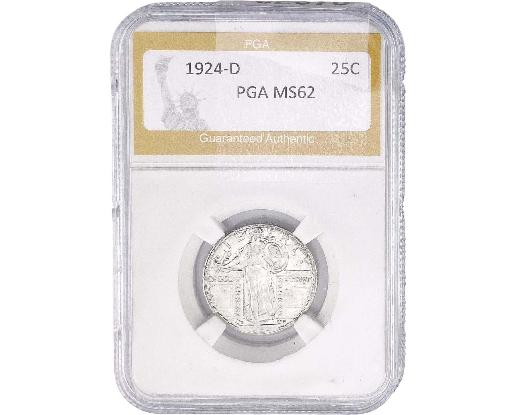 COINS AND CURRENCY LISTED IN GSA’S CATALOG AS GRADED AND ENCAPSULATED BY PCGS, NGC, ANACS, ICG, PCGS CURRENCY, PMG, PCGS BANKNOTE GRADING, CMC OR ANY OTHER THIRD-PARTY GRADING SERVICE ARE LIKEWISE SOLD “AS-IS” EXCEPT AS EXPRESSLY SET FORTH HEREIN. ALL THIRD-PARTY GRADING SERVICE GUARANTEES, INCLUDING AUTHENTICITY, ARE THE SOLE RESPONSIBILITY OF THE THIRD-PARTY GRADING SERVICE AND NOT WARRANTIES OR GUARANTEES OF GSA. BIDDERS SHOULD CONTACT THESE THIRD-PARTY GRADING SERVICES DIRECTLY WITH RESPECT TO ANY CLAIMS OR QUESTIONS THEY MAY HAVE CONCERNING THEIR GUARANTEES AND WARRANTIES. BIDDERS ACKNOWLEDGE AND AGREE THAT AUCTIONEER IS NOT BOUND BY OR LIABLE FOR ANY OPINION OR CERTIFICATION BY ANY THIRD-PARTY GRADING SERVICE. REMOVAL OF A PRODUCT FROM ITS PROTECTIVE CASING OR HOLDER OR ALTERATION OF ANY COIN HOLDER WAIVES ALL RIGHTS CONCERNING THE PRODUCT CONTAINED THEREIN.