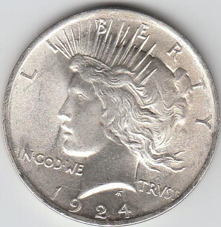 1924 FLASHY UNC PEACE SILVER DOLLAR
