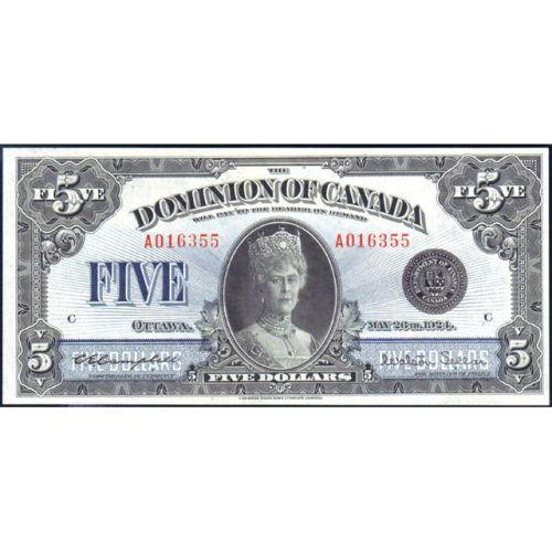 1924 FiveDollars Queen Mary, DC-27, Serial Number A016355 C, AU. A fully original note, slightly off centre toward the right