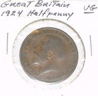 1924 GREAT BRITAIN HALF PENNY *VERY GOOD GRADE*!! ***Coin, Currency & All Items Listed in this auction - Grades, Conditions and Values are not Safe Deposit Coins LLC Responsibilty. Grades, Condition and Values are determined by Consigner(s) & Buyers ONLY***