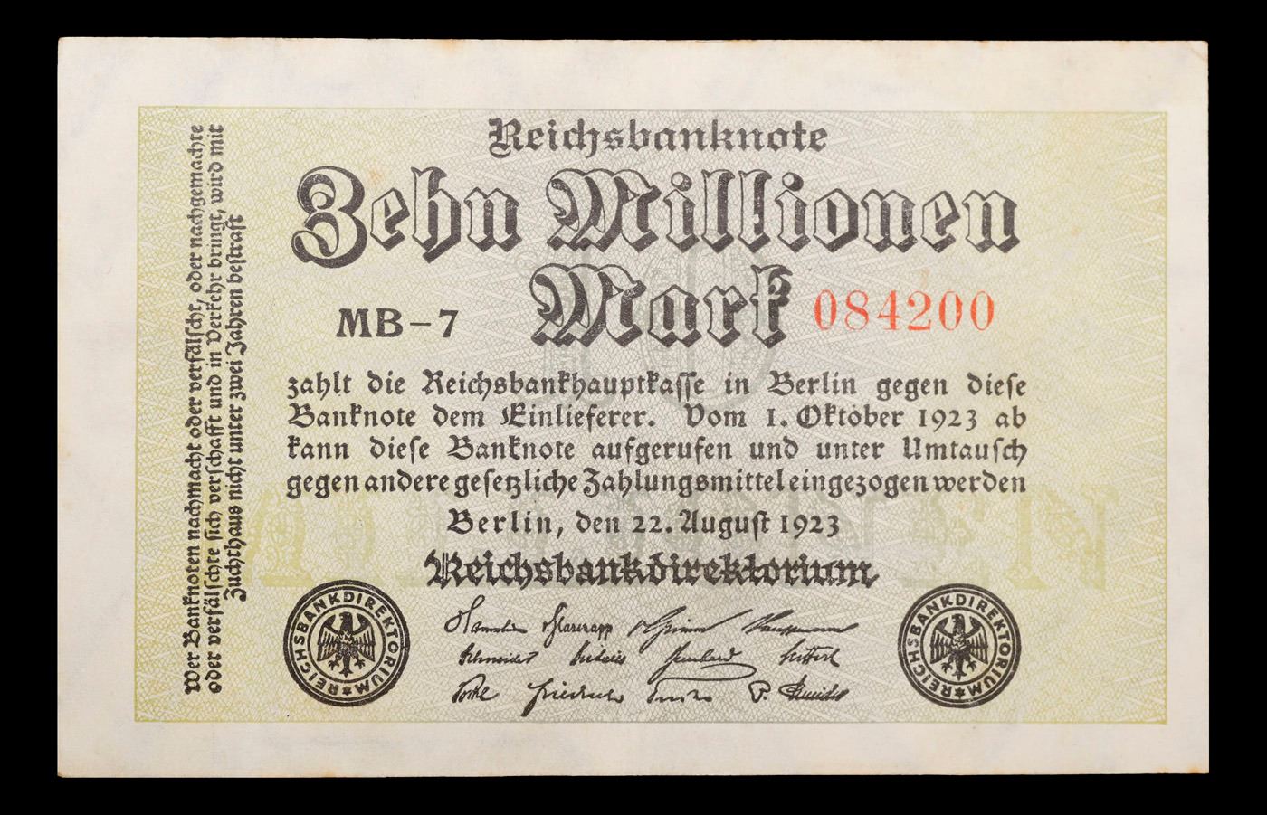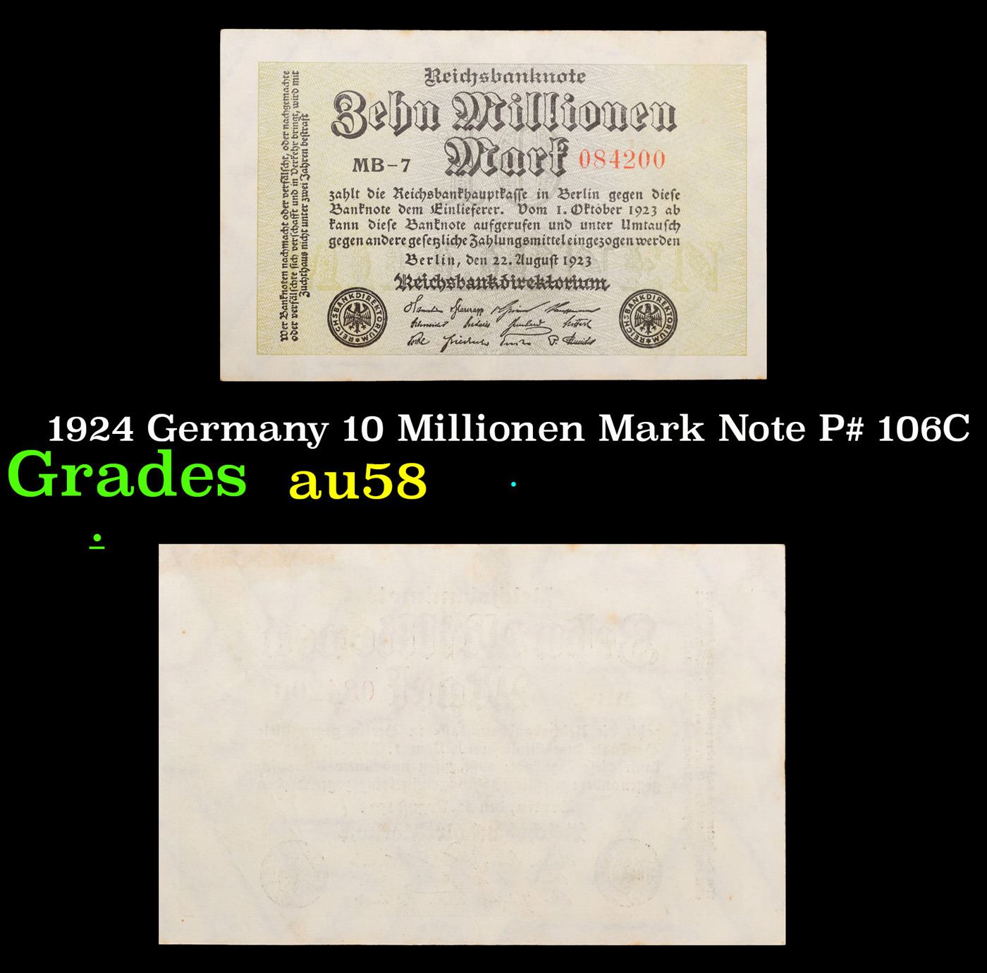 1924 Germany 10 Millionen Mark Note P# 106C Grades Choice AU/BU Slider.