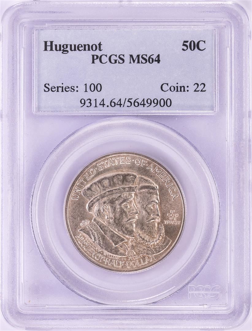 One 1924 Huguenot Commemorative Half Dollar Coin PCGS MS64. PCGS Graded.