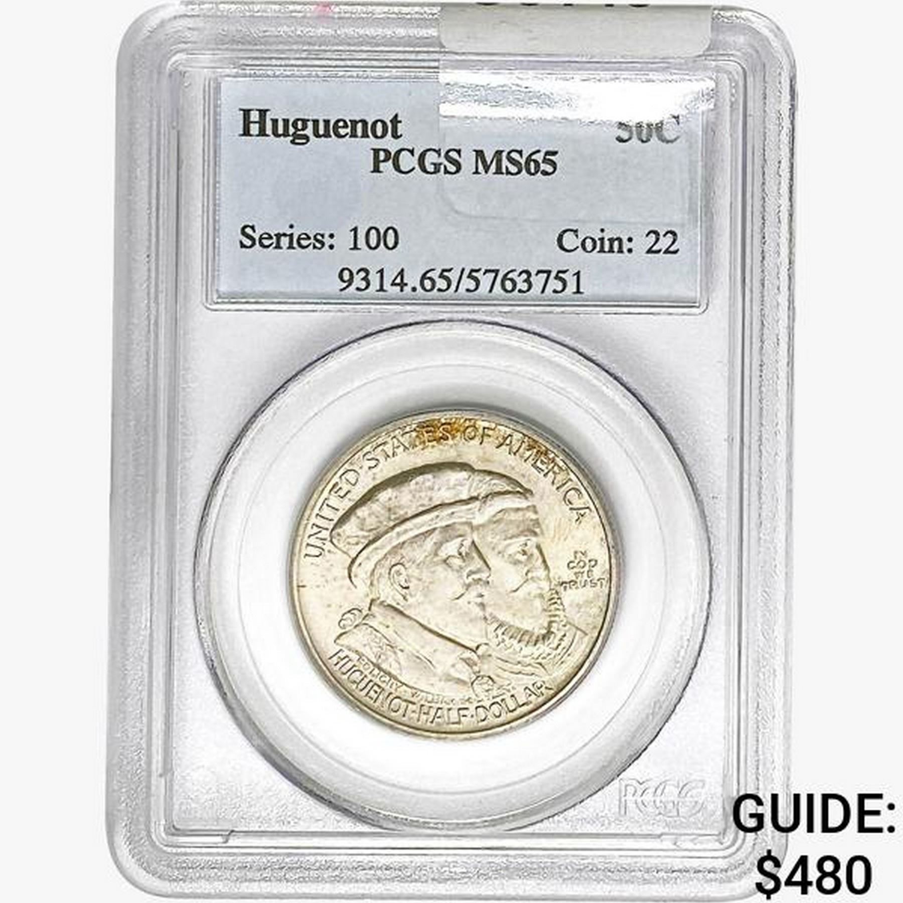1924 Huguenot Half Dollar PCGS MS65