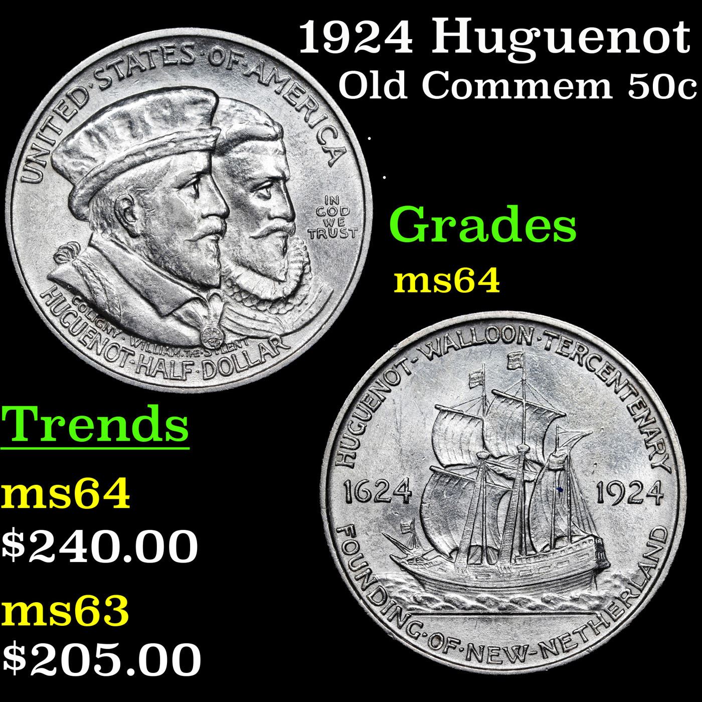 1924 Huguenot Old Commem 50c Grades Choice Unc
