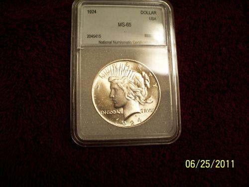 1924 MS-65 Graded Silver Peace Dollar In Large Slab