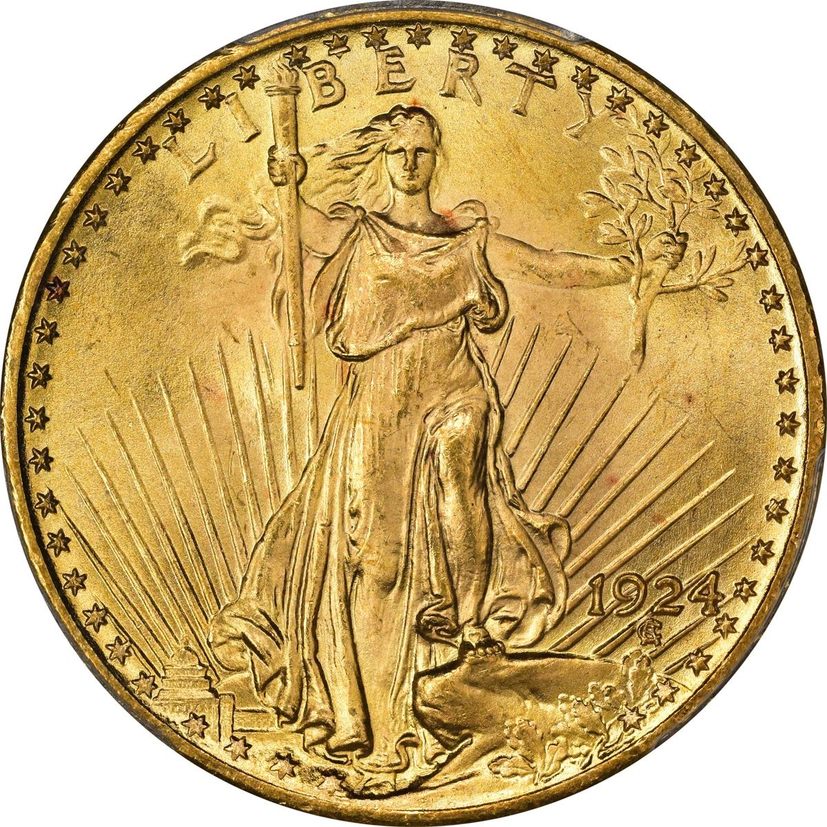 Simply outstanding, this bright and boldly lustrous gem offers lively olive highlights on its deep yellow-gold surfaces. A beautiful example of a popular issue. PCGS #9177