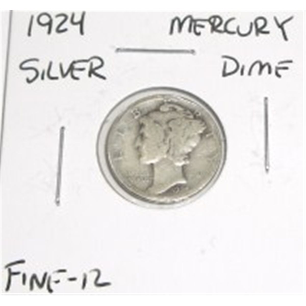 1924 Mercury SILVER Dime *FINE-12 GRADE*!! ***Coin, Currency & All Items Listed in this auction - Grades, Conditions and Values are not Safe Deposit Coins LLC Responsibilty. Grades, Condition and Values are determined by Consigner(s) & Buyers ONLY***