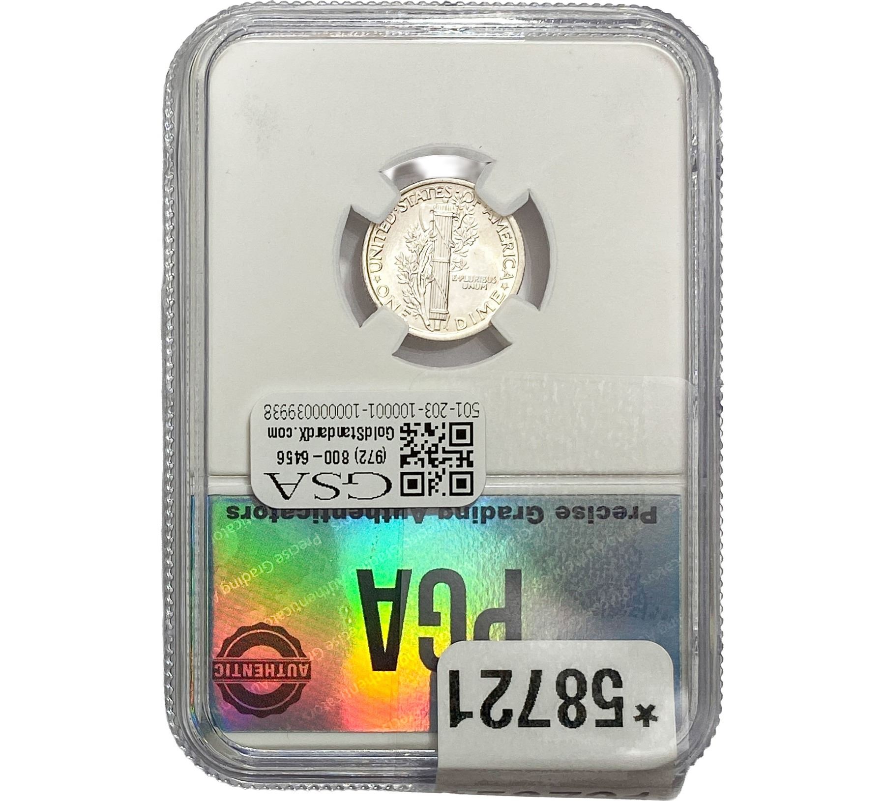 COINS AND CURRENCY LISTED IN GSA’S CATALOG AS GRADED AND ENCAPSULATED BY PCGS, NGC, ANACS, ICG, PCGS CURRENCY, PMG, PCGS BANKNOTE GRADING, CMC OR ANY OTHER THIRD-PARTY GRADING SERVICE ARE LIKEWISE SOLD “AS-IS” EXCEPT AS EXPRESSLY SET FORTH HEREIN. ALL THIRD-PARTY GRADING SERVICE GUARANTEES, INCLUDING AUTHENTICITY, ARE THE SOLE RESPONSIBILITY OF THE THIRD-PARTY GRADING SERVICE AND NOT WARRANTIES OR GUARANTEES OF GSA. BIDDERS SHOULD CONTACT THESE THIRD-PARTY GRADING SERVICES DIRECTLY WITH RESPECT TO ANY CLAIMS OR QUESTIONS THEY MAY HAVE CONCERNING THEIR GUARANTEES AND WARRANTIES. BIDDERS ACKNOWLEDGE AND AGREE THAT AUCTIONEER IS NOT BOUND BY OR LIABLE FOR ANY OPINION OR CERTIFICATION BY ANY THIRD-PARTY GRADING SERVICE. REMOVAL OF A PRODUCT FROM ITS PROTECTIVE CASING OR HOLDER OR ALTERATION OF ANY COIN HOLDER WAIVES ALL RIGHTS CONCERNING THE PRODUCT CONTAINED THEREIN.