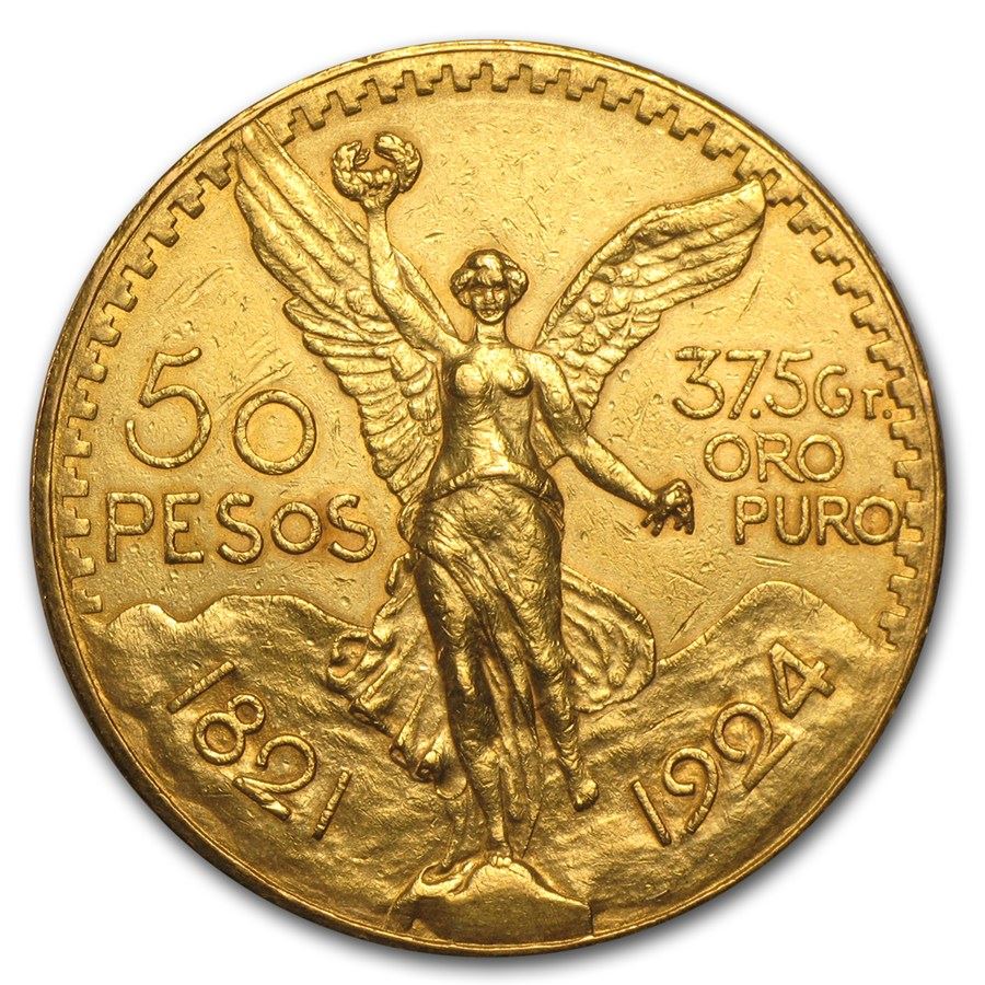 1924 Mexico Gold 50 Pesos Gold Content = 1.2057 oz. Better early date!