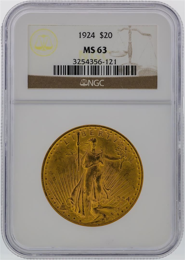 One 1924 NGC MS63 $20 St. Gaudens Double Eagle Gold Coin. NGC Certified.
